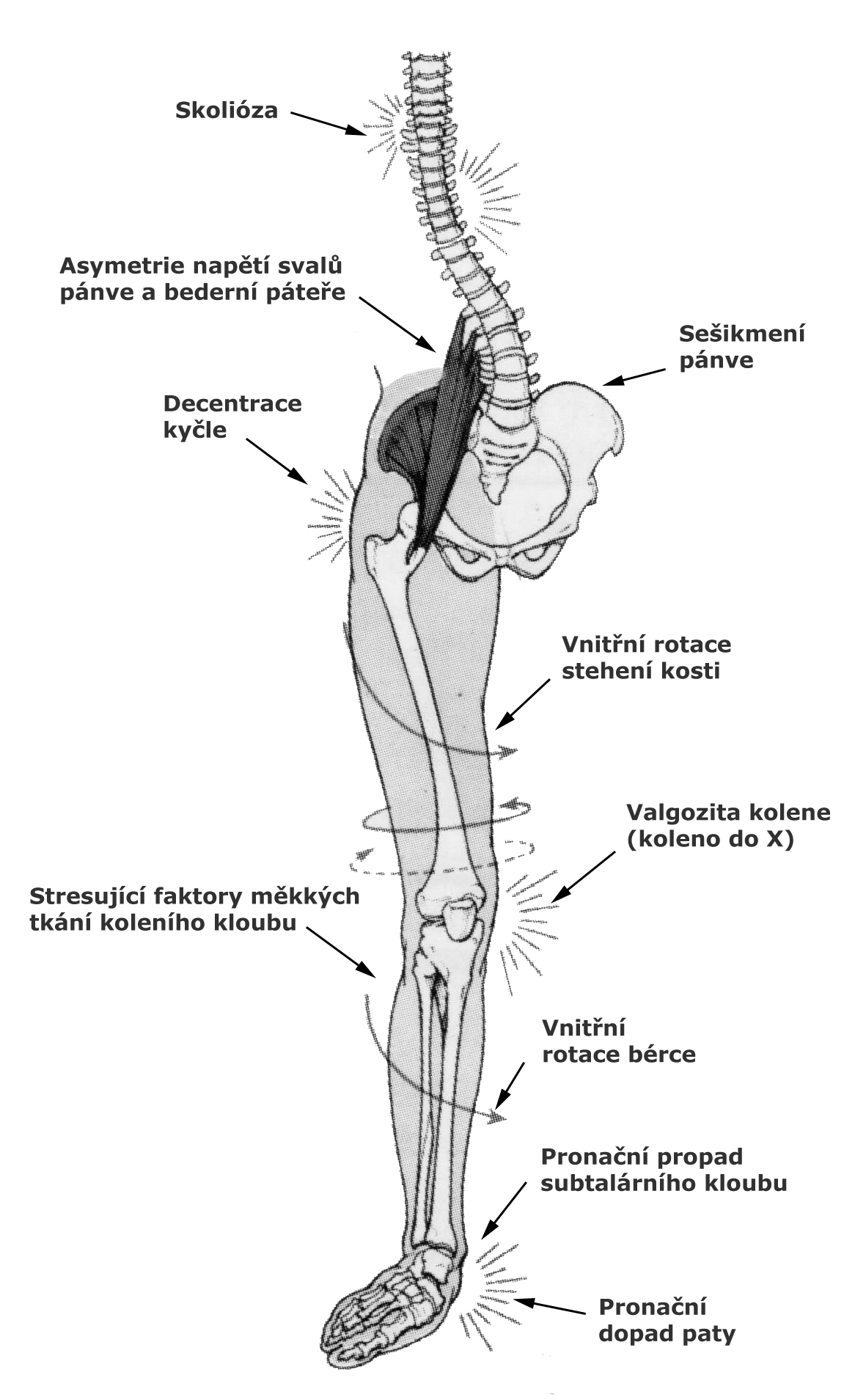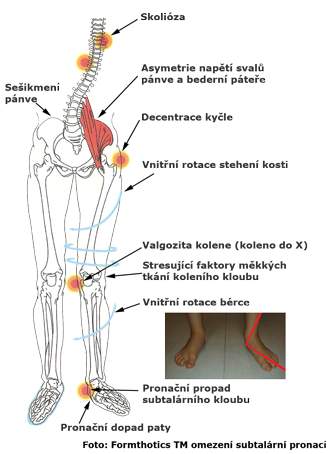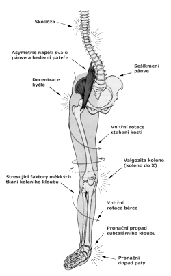 Nerovnováha mezi kostním a svalovým systémem chodidla vede k nevyváženému postavení kolenního a kyčelního kloubu, pánve, celé páteře, ramen a lebky.